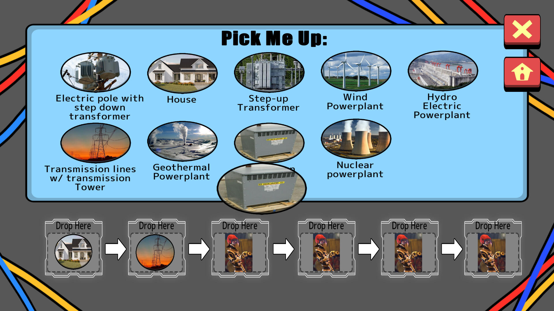 Custom Electricity Drag and Drop game