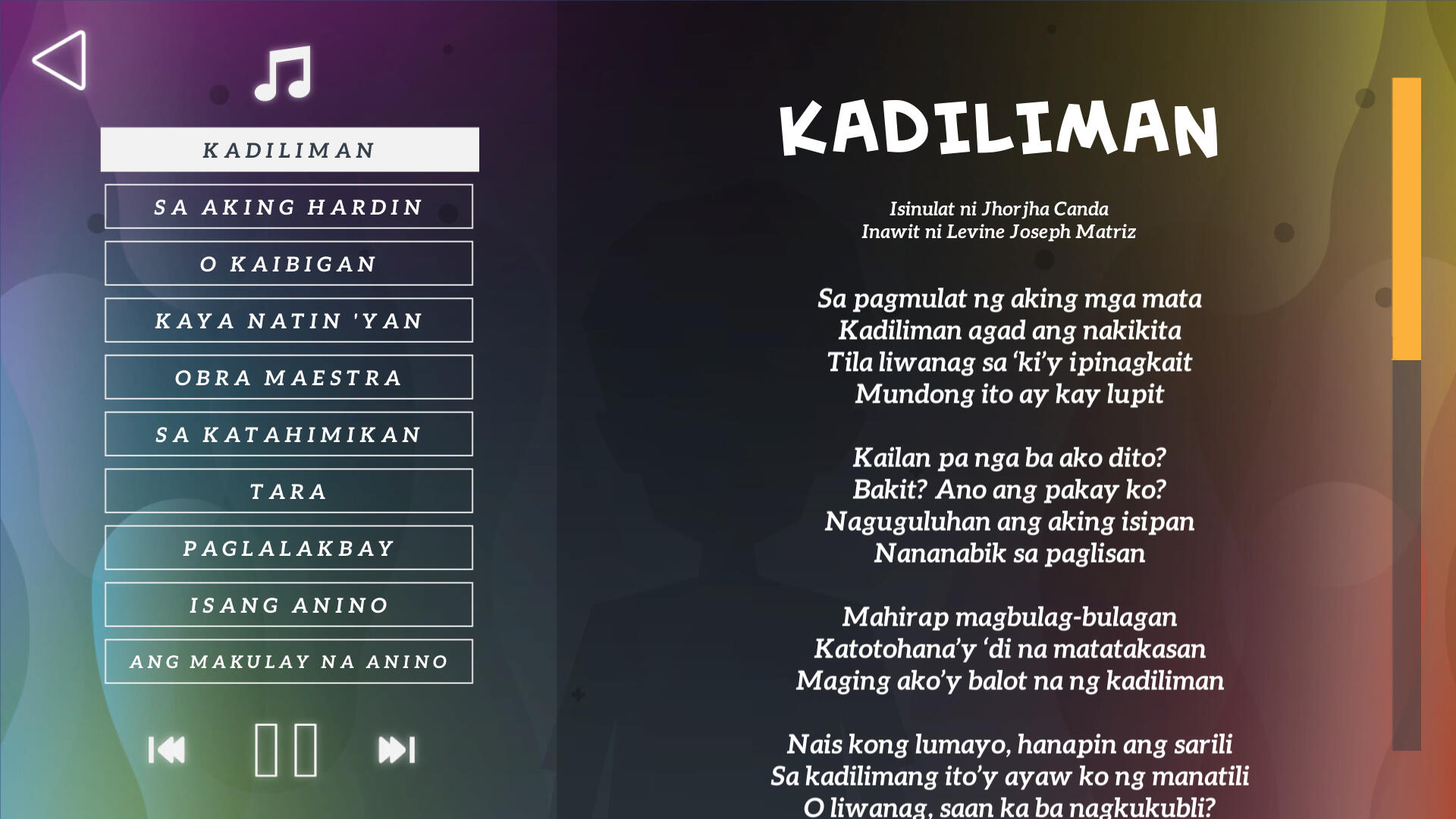 Ang Paglalakbay ni Anino is translated as The Shadow's Journey. It was commissioned by a group of graduating students for their Thesis. They have made all of the artwork and I was the one responsible for developing the app based on their design. Below are some of the systems I worked on.